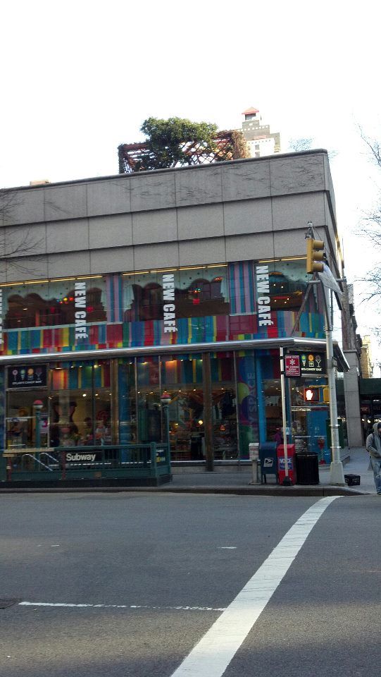 Ess-a-Bagel for bagels and coffee to go. I got an everything bagel with chive cream cheese. It was still warm from the oven. And they put a TON of cream cheese on it, which is just how I like my bagel. As a vessel for cream cheese. Yes, siree. In my excitement, I dropped half my bagel on the yucky NYC sidewalk and I was pissed. But the bagels are so big, I was full from my saved half anyway. Good thing.